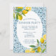 O design apresenta um fundo de mosaico azulejo azul, com limões em cantos opostos. Perfeito para um partido de inspiração italiana, mediterrânica ou da Costa Amalfi!