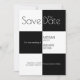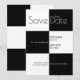 Esta placa Save the Date apresenta grandes azulejos em preto e branco que lembram os pisos clássicos de dança nos músicos de hoje e de eras passadas. Um design eterno, perfeito para um tema de casamento preto e branco. Isto é parte de uma suíte de casamento elegante que inclui um convite, cardápio e outros bens essenciais.