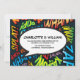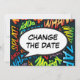 Personalize com seus nomes e detalhes para anunciar a mudança de data do seu evento especial. Tema de arte pop de história em quadrinhos moderno, divertido e retrô, perfeito para casamentos, chás de noiva, chás de bebê, batizados, festas de noivado, celebrações de aniversário de casamento, formaturas, festas de aniversário e outros eventos especiais ao longo do ano! Um design legal, moderno e divertido que dá um impacto no seu dia. Criado por Thisisnotme©