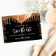 Uma cinta e uma moda Salve a placa Date para uma festa de aniversário 18th (ou qualquer idade). Um fundo preto clássico decorado com brilho de ouro falso e balões. Personalize e adicione uma data e nome/idade. O texto: Salvar a Data é gravado com um script de estilo com letra de tendência grande.