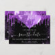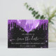 Uma cinta e uma moda Salve a placa Date para uma festa de aniversário 18th (ou qualquer idade). Um fundo preto decorado com gotas de brilho púrpura, faíscas e balões. Personalize e adicione uma data e nome/idade. O texto: Salvar a Data é gravado com um script de estilo com letra de tendência grande.