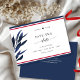 Celebre seu casamento em estilo eterno com este chic e sofisticado cartão Salvar a Data. Com uma borda ousada, mas refinada, de listras vermelhas, brancas e azuis, este design equilibra perfeitamente a elegância moderna e o patriotismo sutil. A frente mostra um belo motivo folha em folha de papel falso, somando um toque de textura luxuosa sem esmagar a simplicidade do design. A caligrafia moderna e escrita à mão enquadra lindamente os seus detalhes de eventos, dando ao convite um talento artístico personalizado. No verso, um fundo azul limpo e atraente cria um contraste sereno à frente. Aqui, você tem a opção de adicionar quaisquer detalhes adicionais — seja uma mensagem especial ou informações de viagem — ou mantê-la simples com um design vazio para um toque minimalista. Quer você esteja hospedando uma cerimônia íntima ou uma grande celebração, esta Salve a Data captura a essência da elegância moderna, fazer-a a primeira impressão perfeita para o seu grande dia. Os convites para casamento são iguais também estão disponíveis no Zazzle.