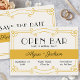 Art Deco, Bar Aberto, Salvar a Data com cantos recortados (opcional) e paleta de cores moderna de ouro amarelo ocre e cinzas muito leves. O design apresenta a tipografia da manchete de deco de arte e uma moldura de rolagem decorativa. Um design de tipografia simples e fresca com um nó na glamourosa icônica de 1920.