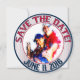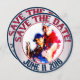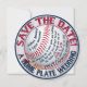 Casamento com beisebol, Cartões salve a data da Ronda. Este é personalizado para um cliente específico. O lado frontal da placa é uma inserção/quadro de fotos. Anéis internos e externos azuis com uma foto personalizada no centro. O texto do vidro vermelho e azul decorativo circula ao redor do topo e diz: SALVE A DATA. Mais textos de vidro circulam por baixo e dizem: A DATA DE CASAMENTO DOS CASAIS, de 11 de junho de 2016. O fundo exterior da jante é vermelho, branco e azul de beisebol. Na parte traseira do cartão, você tem o mesmo texto no topo. O texto de baixo diz: "A HOME PLATE WEDDING". Dois morcegos de madeira com texto gravado embelezam o texto. O fundo central é um beisebol branco com costura vermelha. Curvas decorativas de texto ao redor da bola e lê: Seu nome: Mathew Howard e seu nome: Sylvia Newcomb- estão subindo para a placa inicial e batendo 1000 que seu amor durará para sempre. As equipes se fundirão em uma no dia 11 de junho de 2016. Por favor, juntem-se a nós em comemoração enquanto juramos o nosso amor um pelo outro. Os convites temáticos do casamento de baseball estão disponíveis em várias combinações e padrões. Estes convites incluem também os envelopes.