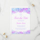 Sombras de flores cor-de-rosa, lavanda e azul aqua hydrangea e uma Estrela de David decoram esta elegante aquarela Bat Mitzvah Salve o cartão Date. Este design apresenta uma borda floral no topo e na base. Seus detalhes de celebração podem ser personalizados em uma tipografia moderna de roteiro em rosa e cinzas. A parte traseira da placa tem uma estrela de David em tons de rosa, lavanda e azul-aqua.