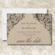 Elevem seu casamento gótico com cartões salve a data inspirados no Vitoriano que exudem elegância e mistério eterno. Projetado para se assemelhar a uma antiga ligação a livros, este design impressionante apresenta um intrincado filigre preto lacey em papel kraft castanho, evocando o charme de uma era passada e adicionando um toque de romance escuro, perfeito para definir o tom de sua celebração única. Deixe sua história de amor se desenrolar com um design tão inesquecível quanto seu dia. Criado pela imprensa simplesmente de farmácia.