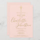 A assinatura de ouro batismo elitista que batismo batizante salva o convite de data que contém um nome de assinatura de script de ouro elegante. Personalize com seu batismo especial ou informações batizantes em letras de ouro em chic em um fundo cor-de-rosa pincelado. Projetado por Thisnotme©