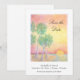 Beach Wedding salve o cartão de data, com uma imagem colorida de pôr do sol da praia tropical e um elegante design de tipografia de script. Com a inscrição personalizável, você pode adicionar suas próprias informações. Excelente de anunciar o casamento de destino!