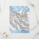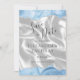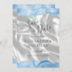 As bordas superior e inferior deste elegante casamento moderno salvam o cartão de data que apresenta uma cor azul-d-água pastel, borda com brilho de prata sujo. O texto personalizável combina a escrita manual de cinzas de carvão e as fontes sans serif em uma imagem de fundo de seda branca ou satin. O verso apresenta um agato azul pastel e um design de seda branca.