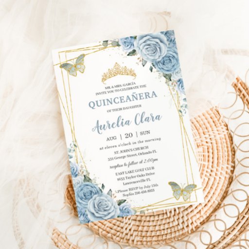 Soft Baby Blue Floral Gold Quinceanera BirthdayCriado por The Happy Cat Studio
