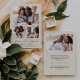 Este simples e minimalista Cartão Salvar a Data apresenta uma colagem de 3 fotos acima das palavras "Salvar a Data" em um elegante roteiro preto, seguido pelos nomes do casal, data do casamento e cidade em sans serif em um fundo bege. Adicione uma quarta foto horizontal e uma mensagem mais detalhada com informações adicionais no verso.