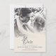 Beijar o casal de casamento no cartão de casamento monocromático, no qual a imagem, a ocasião, os nomes, a localização e a data podem ser personalizados na modelo.
