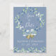 Linda grinalda floral azul com bela caligrafia em branco. O azul empoeirado com a estampa azul apenas define o tom para uma elegância simples.