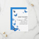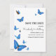 Simples e elegante guarde o cartão de casamento de data, com uma coleção de belas borboletas azuis e uma modelo de salvamento fácil de personalizar.