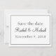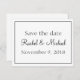 Um belo cartão de salvamento, este design retrata um fundo branco com uma fonte preta, salve a data do seu casamento com estes adoráveis convites. Usando modelos fáceis de usar, personalize o seu hoje!
