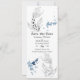 Este anúncio de casamento Save the Date contém dois belos peixes japoneses, preto e branco, nadando. O convite é feito em tons de preto, branco e azul. -