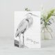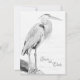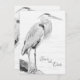 Este anúncio do casamento Save the Date apresenta um desenho de lápis com estilo desenhando de um belo Excelente Blue Heron sobre rochas com vista para a água. Tudo feito em tons de cinza, branco e azul. ^