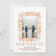 Berries e saem do casamento outono de fronteira Salve o anúncio Data. A frente apresenta um quadro feito de bagas e folhas, o texto "Salvar a Data" em uma fonte colorida e sua foto. O dorso é de cor laranja sólida queimada.