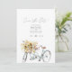 Esta rústica salvação do cartão tem um tema animado de casamento de girassol amarelo com uma bicicleta azul tandem e uma cesta cheia de flores amarelas e folhagem verde. Perfeito para casamentos de primavera, casamentos e casamentos outono de verão e fácil de personalizar com suas informações. Baseado em uma cor d'água original por © Lisa Audit Art. Envolva-se com arte animadora.