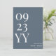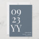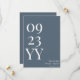 Anuncie seu casamento em estilo com o Big Bold Date Dusty Blue Salve a Data. Apresentando um fundo azul sujento com letras e números brancos ousados, este design minimalista mostra com destaque a data do seu casamento ao lado dos nomes do noivo e da noiva. Perfeito para casamentos modernos, elegantes ou românticos, esta carta salva-vidas combina simplicidade e sofisticação, garantindo que seus convidados marquem seus calendários para seu grande dia.
