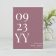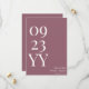 Anuncie seu dia especial com o Big Bold Date Dusty Pink Salvar a Data. Apresentando um fundo cor-de-rosa suave e empoeirado com letras e números brancos ousados, este design minimalista mostra com destaque a data do seu casamento ao lado do noivo e dos nomes da noiva. Perfeito para casamentos modernos, românticos ou de vassoura, este cartão guardado combina simplicidade e encanto, garantindo que os seus convidados marquem os seus calendários com entusiasmo.