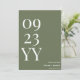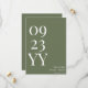 Faça uma impressão duradoura com o Big Bold Date Sage Green Salvar a Data. Apresentando um plano verde calmante com letras e números brancos ousados, esta design minimalista destaca sua data de casamento ao lado dos nomes do noivo e da noiva. Perfeito para casamentos modernos, rústicos ou inspirados na natureza, este cartão guardado combina simplicidade com elegância, garantindo que os seus convidados estejam entusiasmados para marcar os calendários para o dia especial.