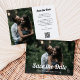 Esse casamento de estilo de tendência e vintage salva o recurso de cartões de data na frente como uma sobreposição na sua foto. O fundo tem um fundo preto e branco, e outra foto, junto com um código de QR digitalizável para adicionar seu site de casamento.