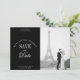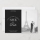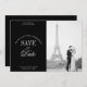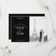 This elegant save the date card in black and white features "save the date" styled with a mixture of classic text and elegant calligraphy script that lends a chic, classy vibe. It also includes a placeholder for your photo that covers half of the front of the card. The back of the card includes an editable placeholder to indicate your wedding website URL that can also be deleted if the URL is not yet available.