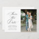 lovely white script lettering black wedding save the date wedding card. The text and colors can be edited.