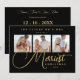 Exquisite Modern Wedding Christmas 3 Photos in Fake Gold and Black Holiday Card as a Save the Date Card.