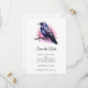 Salve o cartão de data com uma imagem de um corvo preto com asas roxas cor-de-rosa. Uma água cor-de-rosa por trás deste adorável pássaro místico.