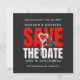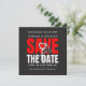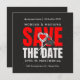 Uma placa achatada em preto e vermelho anuncia sua data especial. Perfeito para uma celebração moderna e elegante. O melhor em cartão quadrado. Pela ValeZizz