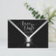 Defina o tom da sua celebração com este modelo de Black Tie Diamond Save the Date. A frente apresenta uma tipografia elegante sobre um rico fundo de damasco preto, acentuado com um gráfico de gravata borboleta onde dois diamantes cintilantes formam o nó. Uma moldura prateada elegante transforma o design em uma silhueta de taça de martini com um caule de diamante — um símbolo único de sofisticação e celebração.