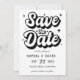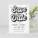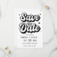 A modern Save the Date featuring a bold, casual script in black on clean white. this announcement personal and fun wedding card is Perfect for a relaxed, contemporary wedding.