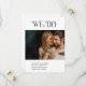 Casamento moderno salve o cartão de data apresentando um layout mínimo com "Nós fazemos" em tipografia ousada sobre sua foto de paisagem. A parte de trás tem uma foto de retrato junto com detalhes adicionais. Todos os elementos de design estão em preto-e-branco e podem ser alterados na ferramenta de edição de design. Esta simples, mas elegante, salva o cartão de data é excelente de um casamento informal ou formal.