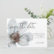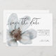 Um belo florescimento aquoso traz elegância romântica e sofisticado talento moderno a este Bloom Romântico Moderno Roteiro Floral Casamento Salve a Data — a mistura de azul-aquoso litorâneo e uma dica de gola de ouro faz com que seja atraente e memorável. Perfeito como um cartão impresso, mas atraente e sem esforço como um download digital também. PERSONALIZE facilmente para torná-lo ajustado às suas necessidades.