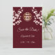 Uma cereja cor-de-rosa poeirenta floresce e um símbolo de felicidade dupla dourada num fundo de marrom. Salve o texto da data em um script elegante. Produtos de casamento chineses correspondentes disponíveis.