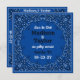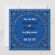 Guarde a data para o seu país ou casamento ocidental ou rústico, com este único cartão personalizado de fotobandana. Quer os seus planos incluam um rancho, fazenda, celeiro ou um cenário de deserto, este cowboy ou bandana cowboy irá coordenar-se com o seu tema de casamento. Design preto e branco autêntico e detalhado com fundo azul. O verso da carta quadrada apresenta a sua foto incorporada à design de bandana e à sala para uma mensagem adicional e inclui um código QR para o seu website de casamento. Oferecido em cores tradicionais, mas que pode ser facilmente personalizado para suas cores de casamento na Ferramenta Design