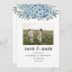 Blue Boho Floral Guarde a data com o Cartão com fotos. Este na moda e Chá de panela elegante apresenta uma linda cor d'água, cor rosa-rosa rosa, pintada manualmente. Localize itens correspondentes na Coleção Floral de Boho Azul.