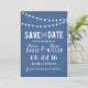 Ter um casamento rústico ou amar o estilo retrô? Personalize sua própria string de verão do quadro comum azul "Salve a data". Personalize o seu "Save the Date" (Salvar a data), alterando o estilo da fonte, a cor e muito mais, clicando no botão "Customize It" (Personalizar) abaixo da imagem do produto.