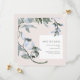 Este design chic apresenta uma impermeabilização de cor azul verde floral e tipografia personalizada.
