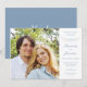 Salve o cartão de data para a Coleção Azul de Terra Floral. A design evoca um sentido de primavera e novos começos com suas matizes pastéis. A aquarela azul floresce, vinha e as folhas enquadram o texto em um fundo branco. Pelo contrário, a parte de trás do cartão é um azul profundo e empoeirado. Adicione a sua própria fotografia e personalize as informações para o seu evento. Perfeito para um casamento no jardim ou na primavera.