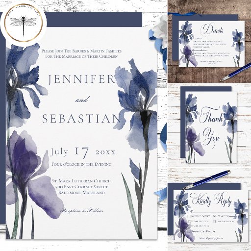 Mergulhe seus hóspedes no eterno elegância com nosso casamento cativante, salve o cartão de data. Íris azuis marinhos profundos, pintados em uma lavagem de cor d'água semitransparente, enquadre cuidadosamente o seu texto em ambos os lados, adicionando um toque de encanto sofisticado. As flores etéreas se destacam maravilhosamente contra o fundo azul de lavagem a aquarela, criando uma sensação de beleza sem esforço. A parte de trás das cartas continua a lavagem de aquarela azul, ecoando o tom floral e acrescentando um toque de luxo moderno. Esta suíte encantadora promete deixar uma impressão duradoura, refletindo perfeitamente o romance refinado do seu dia de casamento. Criado pela imprensa simplesmente de farmácia.