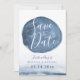 Faça uma impressão exclusiva com este cartão de ponto de vista Salve a data. Ele apresenta um ponto manchado azul com aquarela em direção ao centro com a frase salvar a data dentro dele. Por baixo desta mancha azul há um ponto para os seus detalhes únicos no marinho escuro. Todos os elementos deste item estão desbloqueados e personalizáveis, por isso, divirta-se a criar e fazer-o por si.