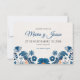This Blue Orange Floral Elegant Fiesta Spanish Wedding Save the Date design features an intricate floral pattern that wraps around the border, showcasing delicate blue and orange flowers interwoven with curling vines and leaves. The color palette, consisting mainly of soft blues with touches of warm orange, creates a harmonious contrast, evoking a hand-painted, artisanal quality. The symmetry of the design along with the detailed floral motifs adds a traditional, handcrafted charm, reminiscent of Mexican folk art.