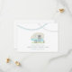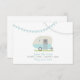 Um casamento salve a data com a ilustração de um trailer azul inspirado na safra estacionado na grama verde. O reboque tem uma caixa de janela cheio de margaridas coloridas e suspensórios de olhos pretos. Azul e cinza no topo. Procure por convites de casamento e mais na Paperie da Jill.