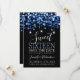 Blue & Black Sweet 16 Birthday Sparkly String Lights "Save the Date" (Salve a data) modelo com endereço da festa e detalhes de RSVP.
