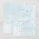 Elegant blue watercolor Save the Date card featuring a minimalist calendar layout. Perfect for announcing your wedding date in a modern and romantic way. Ideal for beach or garden weddings. Easy to personalize with your names, date, time, and location.