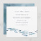 Nosso verão de chic costeiro salva as datas... tem uma escola de peixes de aquarela azul nadando ao longo do fundo. Personalize com sua gravação os detalhes da data em marinho azul.