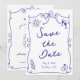 Reserve A Data Blue Whimsical Diversão Quirky Fez Casamento
